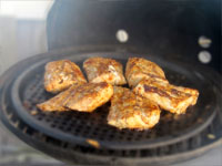 3. Coat the Mahi with oil, then coat liberally with the blacken. Place on a hot grill, and cook until that side is about 1/2 done (your goal is to crust the blacken, so it won't come off when you brush the Mahi with BBQ Sauce).
