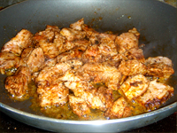 2. Melt some butter in a Teflon fry pan, add a little oil, the blacken, and finally the meat. Since the meat is already cooked, you're just going to cook it long enough, at a high temperature, to blacken with the extra Butt Kickin' Blacken you've put in the pan.