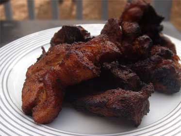 I've smoked hot dogs, in a restaurant using this method, so I figured that it was a no-brainer to try it at home. It worked great, and for those of you who might use a smoker only occasionally, it's a great, easy method for smoking almost any meat. In this case I've done Country Style Ribs, but I've also smoked Turkey Legs for a smoked Turkey Salad Wrap. Both times it worked great, and I know that I'll be using it in the future.