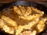 7. Season with a little salt, and Butt Kickin' Blacken as soon as they come out of the oil. If you wait too long, the seasoning won't stick.